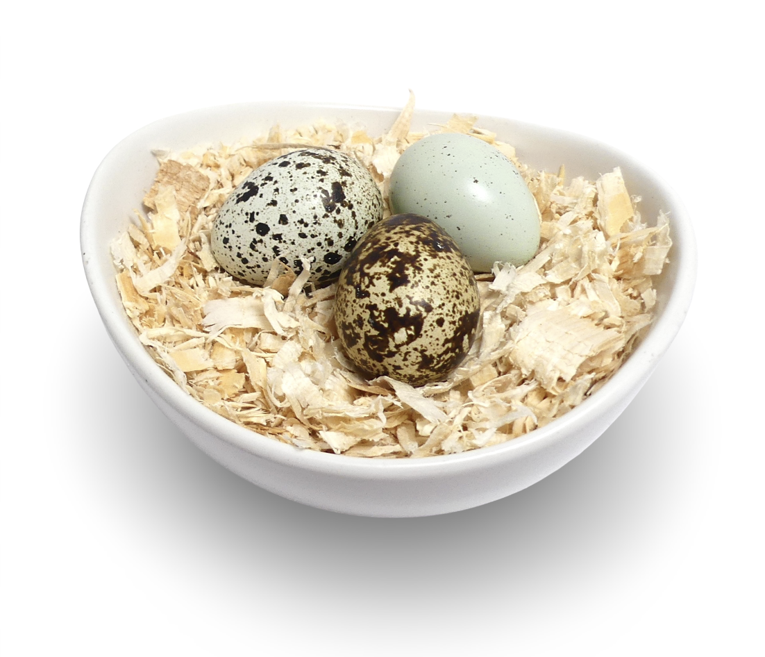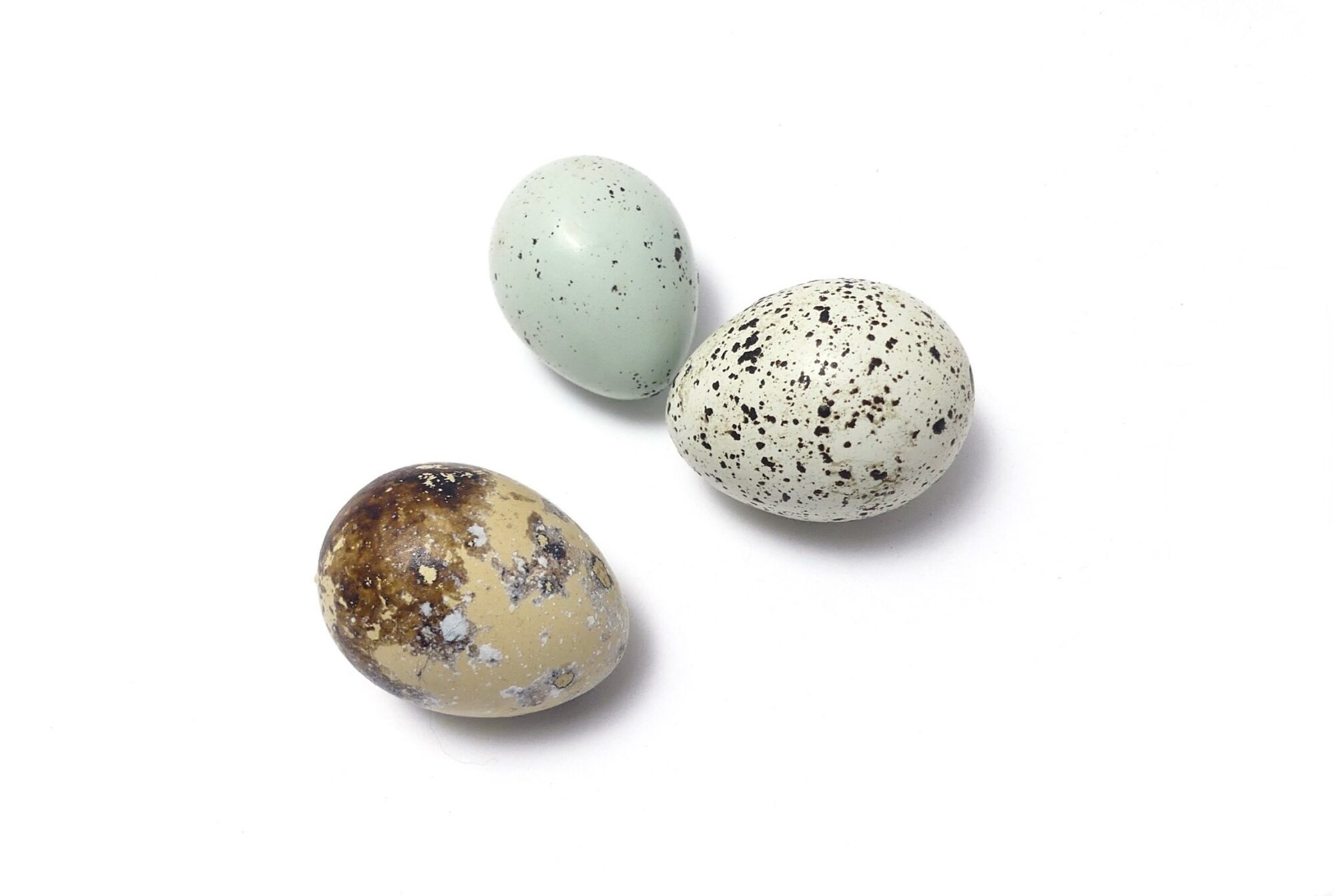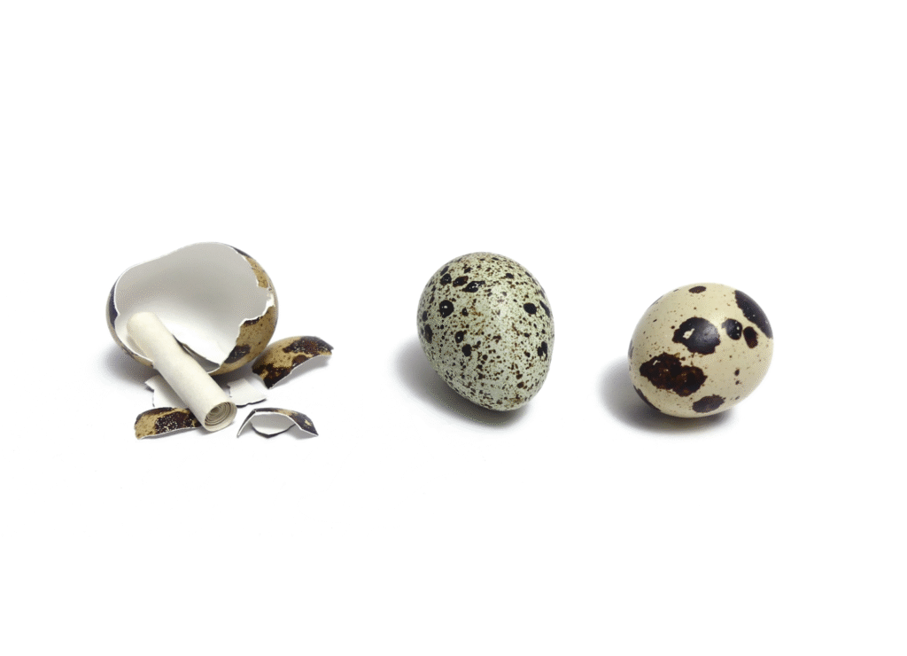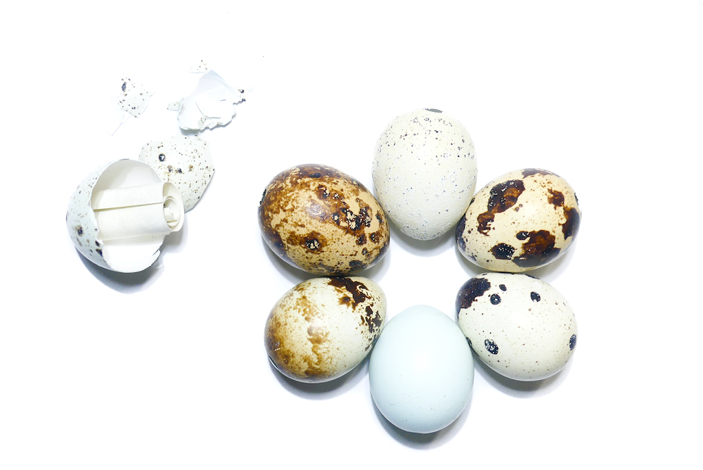 These eggshells are from happy quail that live on a small hobby farm in the countryside of the Pacific Northwest.